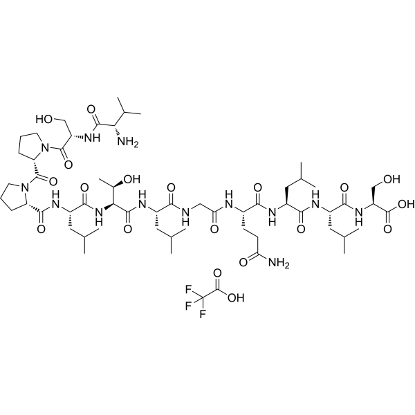 VSPPLTLGQLLS TFA(1 mM;滴鼻;每天一次,持续 7 天)可抑制体内 9-cisRA 诱导的淋巴管生成,而 9-cisRA 是维生素 A 的同工型,与艾滋病相关的卡波西肉瘤有关[1]。在 II 型致死性发育不良 (TDII) 模型小鼠中,VSPPLTLGQLLS TFA 逆转了 TDII 小鼠的新生儿死亡率,并减轻了骨雏形中的骨发育迟缓[2]。