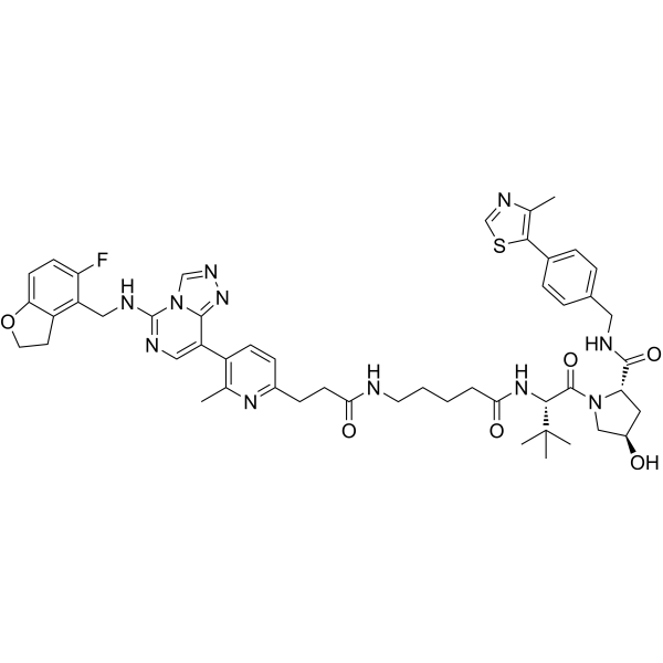 CC1=C(C=CC(=N1)CCC(=O)NCCCCC(=O)N[C@H](C(=O)N2C[C@@H](C[C@H]2C(=O)NCC3=CC=C(C=C3)C4=C(N=CS4)C)O)C(C)(C)C)C5=CN=C(N6C5=NN=C6)NCC7=C(C=CC8=C7CCO8)F