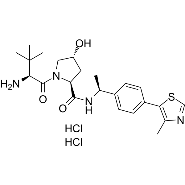 CC1=C(SC=N1)C2=CC=C(C=C2)[C@H](C)NC(=O)[C@@H]3C[C@H](CN3C(=O)[C@H](C(C)(C)C)N)O.Cl.Cl