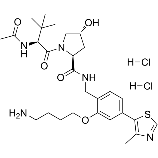 InChI=1S/C28H41N5O5S.2ClH/c1-17-24(39-16-31-17)19-8-9-20(23(12-19)38-11-7-6-10-29)14-30-26(36)22-13-21(35)15-33(22)27(37)25(28(3,4)5)32-18(2)34;;/h8-9,12,16,21-22,25,35H,6-7,10-11,13-15,29H2,1-5H3,(H,30,36)(H,32,34);2*1H/t21-,22+,25-;;/m1../s1