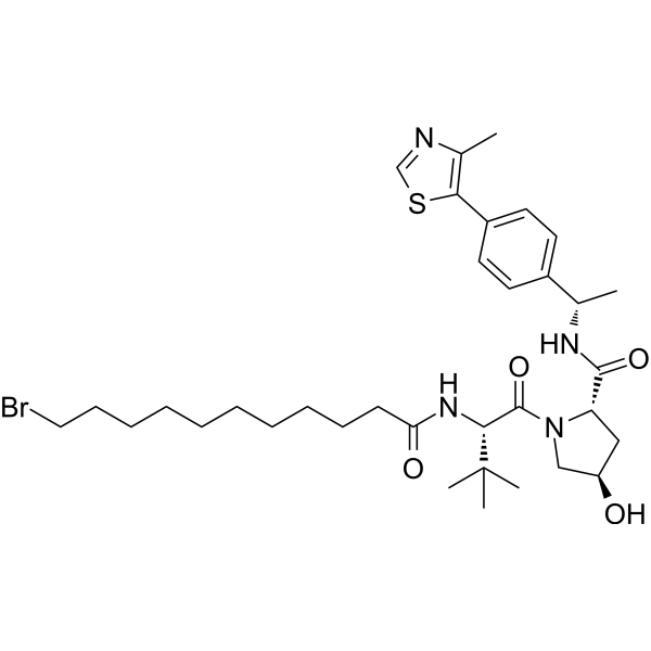 InChI=1S/C34H51BrN4O4S/c1-23(25-15-17-26(18-16-25)30-24(2)36-22-44-30)37-32(42)28-20-27(40)21-39(28)33(43)31(34(3,4)5)38-29(41)14-12-10-8-6-7-9-11-13-19-35/h15-18,22-23,27-28,31,40H,6-14,19-21H2,1-5H3,(H,37,42)(H,38,41)/t23-,27+,28-,31+/m0/s1