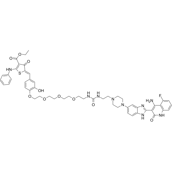 S1/C(/C(C(=O)OCC)=C(/C/1=C/C1C=CC(=C(C=1)O)OCCOCCOCCOCCNC(NCCN1CCN(C2=CC=C3C(=C2)NC(C2C(NC4C=CC=C(C=4C=2N)F)=O)=N3)CC1)=O)O)=N\C1C=CC=CC=1