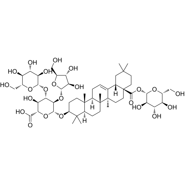 InChI=1S/C53H84O23/c1-48(2)14-16-53(47(68)76-45-37(64)34(61)31(58)25(20-55)71-45)17-15-51(6)22(23(53)18-48)8-9-28-50(5)12-11-29(49(3,4)27(50)10-13-52(28,51)7)72-46-41(75-43-35(62)32(59)26(21-56)70-43)39(38(65)40(74-46)42(66)67)73-44-36(63)33(60)30(57)24(19-54)69-44/h8,23-41,43-46,54-65H,9-21H2,1-7H3,(H,66,67)/t23-,24+,25+,26-,27-,28+,29-,30+,31+,32-,33-,34-,35+,36+,37+,38-,39-,40-,41+,43-,44-,45-,46+,50-,51+,52+,53-/m0/s1