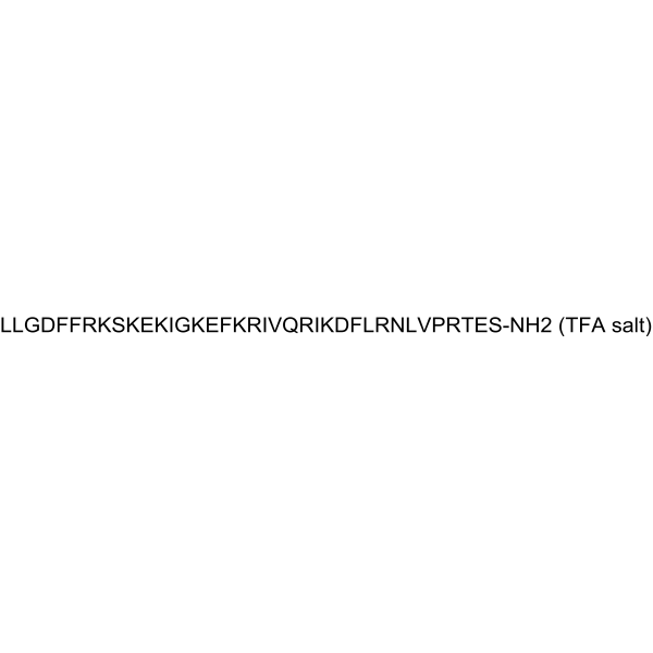 注射用配方1: DMSO : Tween 80: Saline = 10 : 5 : 85 (如: 100 μL DMSO → 50 μL Tween 80 → 850 μL Saline)(IP/IV/IM/SC等) *生理盐水/Saline的制备:将0.9g氯化钠/NaCl溶解在100 mL ddH ₂ O中,得到澄清溶液。 注射用配方 2: DMSO : PEG300 :Tween 80 : Saline = 10 : 40 : 5 : 45 (如: 100 μL DMSO → 400 μL PEG300 → 50 μL Tween 80 → 450 μL Saline) 注射用配方 3: DMSO : Corn oil = 10 : 90 (如: 100 μL DMSO → 900 μL Corn oil) 示例: 以注射用配方 3 (DMSO : Corn oil = 10 : 90) 为例说明, 如果要配制 1 mL 2.5 mg/mL的工作液, 您可以取 100 μL 25 mg/mL 澄清的 DMSO 储备液,加到 900 μL Corn oil/玉米油中, 混合均匀。 View More