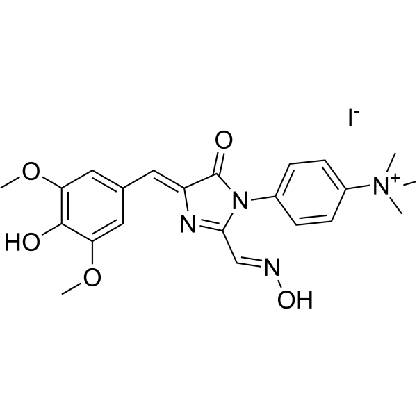 C[N+](C)(C)C1=CC=C(C=C1)N2/C(=C\N=O)/N/C(=C\C3=CC(=C(C(=C3)OC)O)OC)/C2=O.[I-]