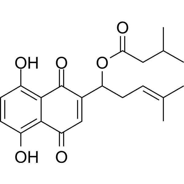 Isovalerylshikonin; 76549-35-4; [1-(5,8-dihydroxy-1,4-dioxonaphthalen-2-yl)-4-methylpent-3-enyl] 3-methylbutanoate; NSC344556; 52387-14-1; Butanoic acid, 3-methyl-, 1-(1,4-dihydro-5,8-dihydroxy-1,4-dioxo-2-naphthalenyl)-4-methyl-3-pentenyl ester; Alkannin isovalerate; SCHEMBL13389448;