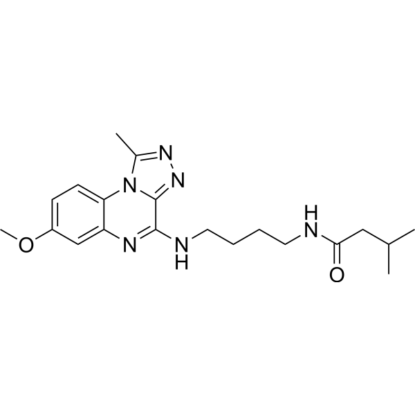 例如,若需制备1 mL的工作液,您可以添加 100 μL 25.0 mg/mL 透明 DMSO 储备液,并将其添加到 400 μL PEG300 中并充分混合。 然后向上述体系中加入50 μL Tween-80,混匀。 然后继续加入450 μL生理盐水至1 mL。 *生理盐水的制备:将 0.9 g 氯化钠溶解在 100 mL ddH₂O中,得到澄清溶液。 配方 2 中的溶解度: 2.5 mg/mL (6.50 mM) in 10% DMSO + 90% (20% SBE-β-CD in Saline) (这些助溶剂从左到右依次添加,逐一添加),澄清溶液; 超声助溶。 例如,若需制备1 mL的工作液,您可以添加 100 μL 25.0 mg/mL 澄清 DMSO 储备液,并将其添加到 900 μL 20% SBE-β-CD 盐水溶液中并充分混合。 *20% SBE-β-CD 生理盐水溶液的制备(4°C,1 周):将 2 g SBE-β-CD 溶解于 10 mL 生理盐水中,得到澄清溶液。 View More