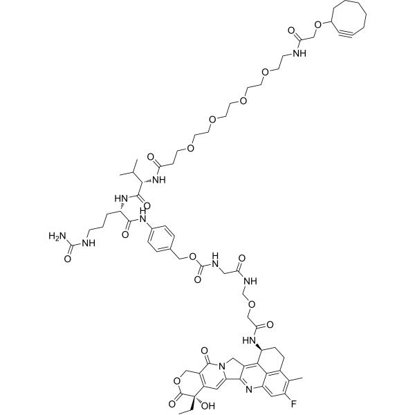 CC[C@@]1(C2=C(COC1=O)C(=O)N3CC4=C5[C@H](CCC6=C5C(=CC(=C6C)F)N=C4C3=C2)NC(=O)COCNC(=O)CNC(=O)OCC7=CC=C(C=C7)NC(=O)[C@H](CCCNC(=O)N)NC(=O)[C@H](C(C)C)NC(=O)CCOCCOCCOCCOCCNC(=O)COC8CCCCCC#C8)O