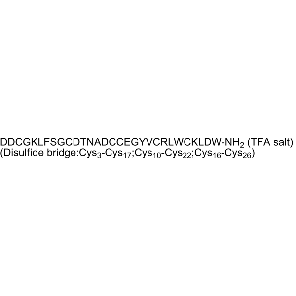 注射用配方1: DMSO : Tween 80: Saline = 10 : 5 : 85 (如: 100 μL DMSO → 50 μL Tween 80 → 850 μL Saline)(IP/IV/IM/SC等) *生理盐水/Saline的制备:将0.9g氯化钠/NaCl溶解在100 mL ddH ₂ O中,得到澄清溶液。 注射用配方 2: DMSO : PEG300 :Tween 80 : Saline = 10 : 40 : 5 : 45 (如: 100 μL DMSO → 400 μL PEG300 → 50 μL Tween 80 → 450 μL Saline) 注射用配方 3: DMSO : Corn oil = 10 : 90 (如: 100 μL DMSO → 900 μL Corn oil) 示例: 以注射用配方 3 (DMSO : Corn oil = 10 : 90) 为例说明, 如果要配制 1 mL 2.5 mg/mL的工作液, 您可以取 100 μL 25 mg/mL 澄清的 DMSO 储备液,加到 900 μL Corn oil/玉米油中, 混合均匀。 View More