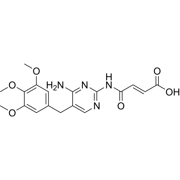 口服配方 1: 悬浮于0.5% CMC Na (羧甲基纤维素钠) 口服配方 2: 悬浮于0.5% Carboxymethyl cellulose (羧甲基纤维素) 示例: 以口服配方 1 (悬浮于 0.5% CMC Na)为例说明, 如果要配制 100 mL 2.5 mg/mL 的工作液, 您可以先取0.5g CMC Na并将其溶解于100mL ddH2O中,得到0.5%CMC-Na澄清溶液;然后将250 mg待测化合物加到100 mL前述 0.5%CMC Na溶液中,得到悬浮液。 View More