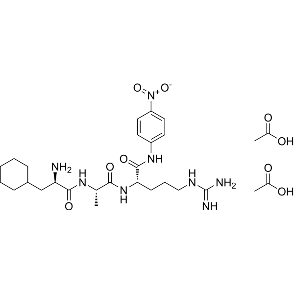 注射用配方1: DMSO : Tween 80: Saline = 10 : 5 : 85 (如: 100 μL DMSO → 50 μL Tween 80 → 850 μL Saline)(IP/IV/IM/SC等) *生理盐水/Saline的制备:将0.9g氯化钠/NaCl溶解在100 mL ddH ₂ O中,得到澄清溶液。 注射用配方 2: DMSO : PEG300 :Tween 80 : Saline = 10 : 40 : 5 : 45 (如: 100 μL DMSO → 400 μL PEG300 → 50 μL Tween 80 → 450 μL Saline) 注射用配方 3: DMSO : Corn oil = 10 : 90 (如: 100 μL DMSO → 900 μL Corn oil) 示例: 以注射用配方 3 (DMSO : Corn oil = 10 : 90) 为例说明, 如果要配制 1 mL 2.5 mg/mL的工作液, 您可以取 100 μL 25 mg/mL 澄清的 DMSO 储备液,加到 900 μL Corn oil/玉米油中, 混合均匀。 View More