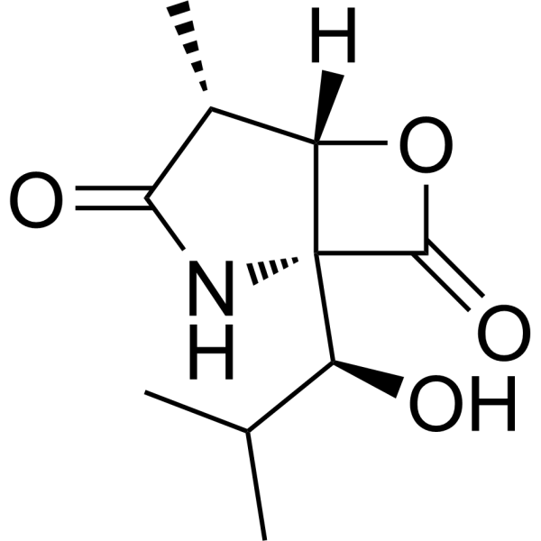 Omuralide clasto-Lactacystin ; A-lactone; clasto-lactacystin beta-lactone; 154226-60-5; (-)-Omuralide; (1R,4R,5S)-1-[(1S)-1-Hydroxy-2-methylpropyl]-4-methyl-6-oxa-2-azabicyclo[3.2.0]heptane-3,7-dione; 6-Oxa-2-azabicyclo[3.2.0]heptane-3,7-dione, 1-[(1S)-1-hydroxy-2-methylpropyl]-4-methyl-, (1R,4R,5S)-; β-Clastolactacystin