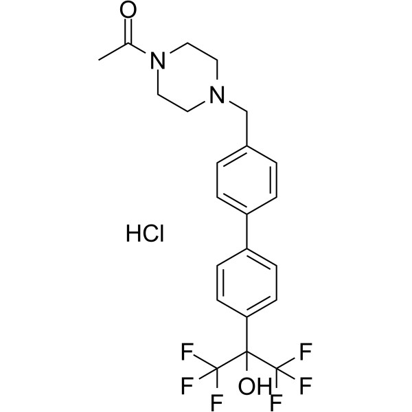 2309312-90-9; SR1555 HCl; 1-(4-((4'-(1,1,1,3,3,3-hexafluoro-2-hydroxypropan-2-yl)-[1,1'-biphenyl]-4-yl)methyl)piperazin-1-yl)ethanone,monohydrochloride; 1-[4-[[4-[4-(1,1,1,3,3,3-hexafluoro-2-hydroxypropan-2-yl)phenyl]phenyl]methyl]piperazin-1-yl]ethanone;hydrochloride; SR 1555 hydrochloride;