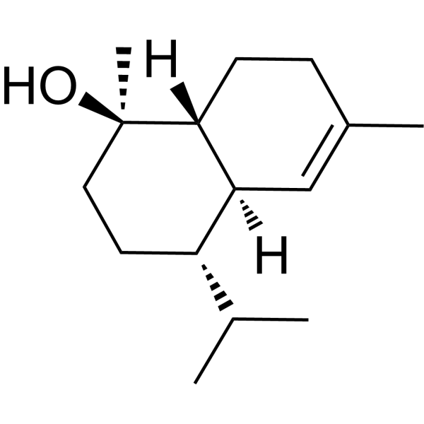2. Concentration-Dependent Activity: - The antimite effect of α-Cadinol is concentration-dependent: mortality of dust mites increased with increasing concentrations, and the time to achieve 100% mortality shortened at higher concentrations (e.g., 5 μg/cm² caused 90% mortality of D. farinae at 24 hours, vs. 100% at 10 μg/cm²) [1] Alpha-cadinol is a cadinane sesquiterpenoid that is cadin-4-ene carrying a hydroxy substituent at position 10. It has a role as a plant metabolite, a fungicide and a volatile oil component. It is a cadinane sesquiterpenoid, a carbobicyclic compound, a tertiary alcohol and a member of octahydronaphthalenes. alpha-Cadinol has been reported in Calypogeia muelleriana, Aristolochia triangularis, and other organisms with data available. |