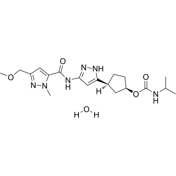 [(1R,3S)-3-[3-[[3-(methoxymethyl)-1-methylpyrazole-5-carbonyl]amino]-1H-pyrazol-5-yl]cyclopentyl] N-propan-2-ylcarbamate;hydrate