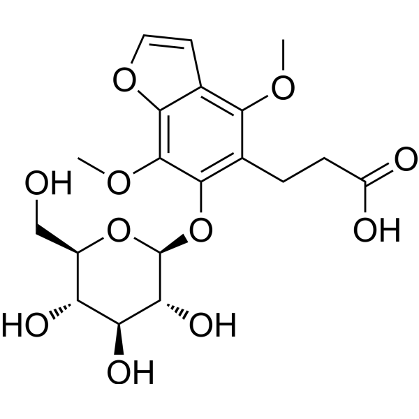 InChI=1S/C19H24O11/c1-26-15-8(3-4-11(21)22)17(18(27-2)16-9(15)5-6-28-16)30-19-14(25)13(24)12(23)10(7-20)29-19/h5-6,10,12-14,19-20,23-25H,3-4,7H2,1-2H3,(H,21,22)/t10-,12-,13+,14-,19+/m1/s1