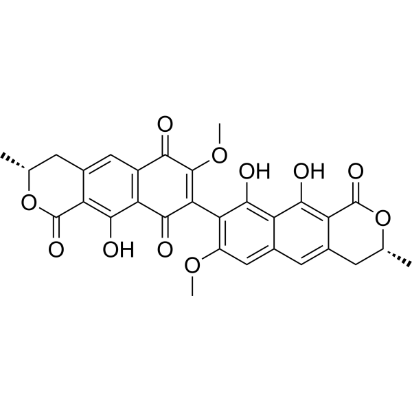 C[C@@H]1CC2=CC3=C(C(=C2C(=O)O1)O)C(=O)C(=C(C3=O)OC)C4=C(C5=C(C6=C(C[C@H](OC6=O)C)C=C5C=C4OC)O)O