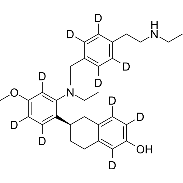 注射用配方1: DMSO : Tween 80: Saline = 10 : 5 : 85 (如: 100 μL DMSO → 50 μL Tween 80 → 850 μL Saline)(IP/IV/IM/SC等) *生理盐水/Saline的制备:将0.9g氯化钠/NaCl溶解在100 mL ddH ₂ O中,得到澄清溶液。 注射用配方 2: DMSO : PEG300 :Tween 80 : Saline = 10 : 40 : 5 : 45 (如: 100 μL DMSO → 400 μL PEG300 → 50 μL Tween 80 → 450 μL Saline) 注射用配方 3: DMSO : Corn oil = 10 : 90 (如: 100 μL DMSO → 900 μL Corn oil) 示例: 以注射用配方 3 (DMSO : Corn oil = 10 : 90) 为例说明, 如果要配制 1 mL 2.5 mg/mL的工作液, 您可以取 100 μL 25 mg/mL 澄清的 DMSO 储备液,加到 900 μL Corn oil/玉米油中, 混合均匀。 View More