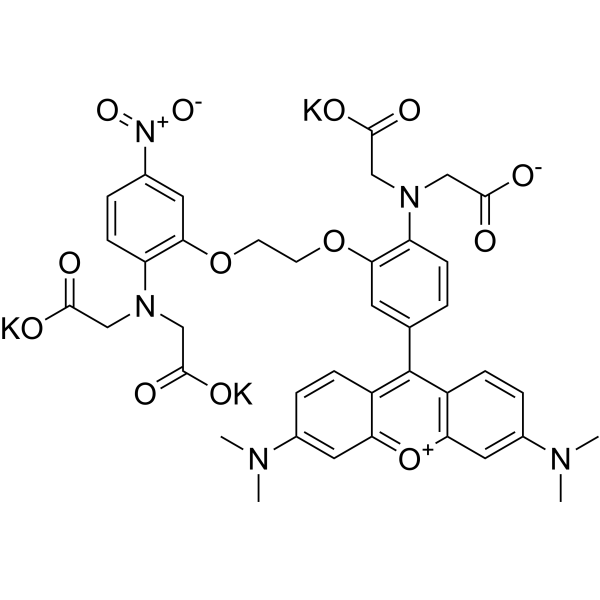 InChI=1S/C39H39N5O13.3K/c1-40(2)24-6-9-27-31(16-24)57-32-17-25(41(3)4)7-10-28(32)39(27)23-5-11-29(42(19-35(45)46)20-36(47)48)33(15-23)55-13-14-56-34-18-26(44(53)54)8-12-30(34)43(21-37(49)50)22-38(51)52;;;/h5-12,15-18H,13-14,19-22H2,1-4H3,(H3-,45,46,47,48,49,50,51,52);;;/q;3*+1/p-3