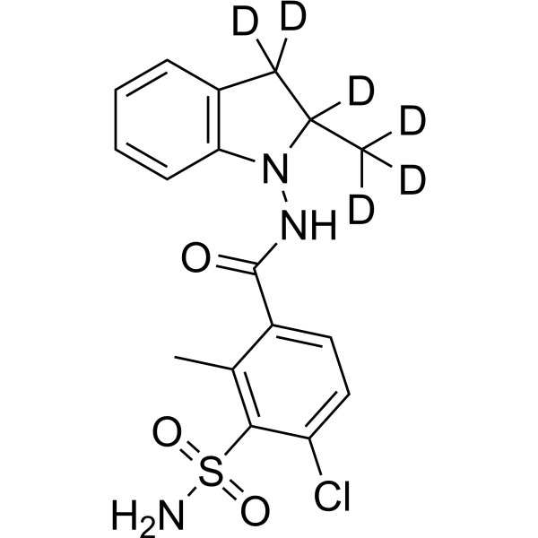 吲达帕胺(1 mg/kg/d;胃管饲 8 周)可降低自发性高血压大鼠 (SHR) 的血压[5]。吲达帕胺(10 mg/kg/d)可降低大鼠对氧杂震颤素、去甲肾上腺素和酪胺的升压反应[2]。