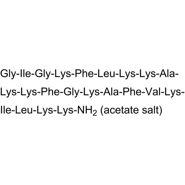 H-Gly-Ile-Gly-Lys-Phe-Leu-Lys-Lys-Ala-Lys-Lys-Phe-Gly-Lys-Ala-Phe-Val-Lys-Ile-Leu-Lys-Lys-NH2.CH3CO2H; Gly-Ile-Gly-Lys-Phe-Leu-Lys-Lys-Ala-Lys-Lys-Phe-Gly-Lys-Ala-Phe-Val-Lys-Ile-Leu-Lys-Lys-NH2;