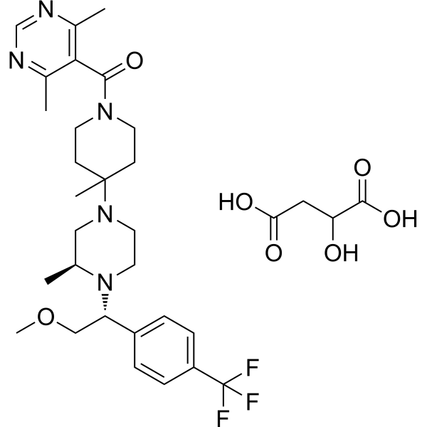 FC(C1C=CC(=CC=1)[C@H](COC)N1CCN(C[C@@H]1C)C1(C)CCN(C(C2=C(C)N=CN=C2C)=O)CC1)(F)F.OC(C(=O)O)CC(=O)O