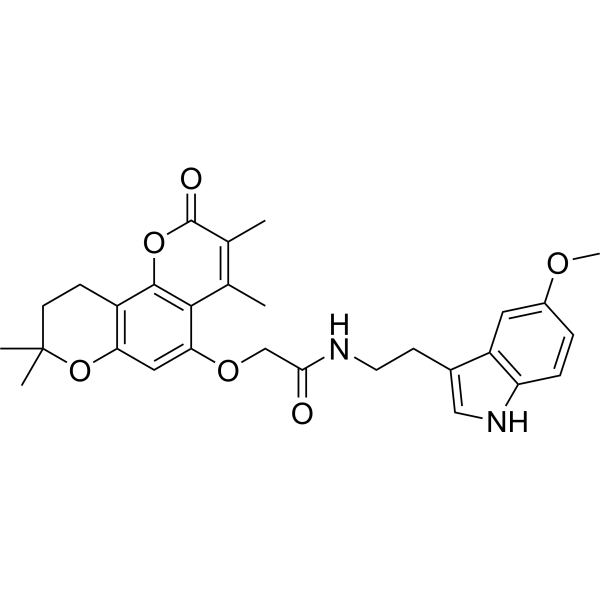 CC1=C(C(=O)OC2=C3CCC(OC3=CC(=C12)OCC(=O)NCCC4=CNC5=C4C=C(C=C5)OC)(C)C)C