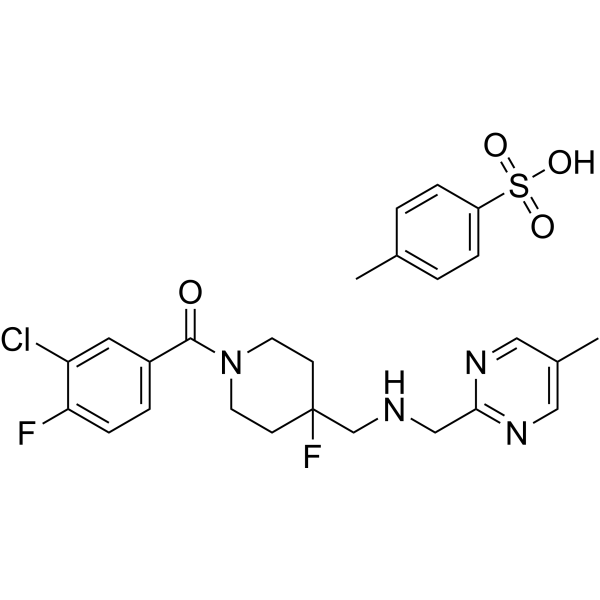 ClC1=C(C=CC(=C1)C(N1CCC(CNCC2N=CC(C)=CN=2)(CC1)F)=O)F.S(C1C=CC(C)=CC=1)(=O)(=O)O