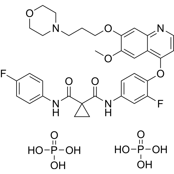 P(=O)(O)(O)O.P(=O)(O)(O)O.FC1=C(C=CC(=C1)NC(C1(C(NC2C=CC(=CC=2)F)=O)CC1)=O)OC1C=CN=C2C=C(C(=CC=12)OC)OCCCN1CCOCC1