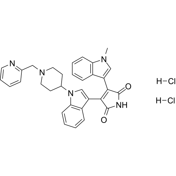 CN1C=C(C2=C(C(NC2=O)=O)C3=CN(C4=CC=CC=C34)C5CCN(CC6=CC=CC=N6)CC5)C7=CC=CC=C71.Cl.Cl