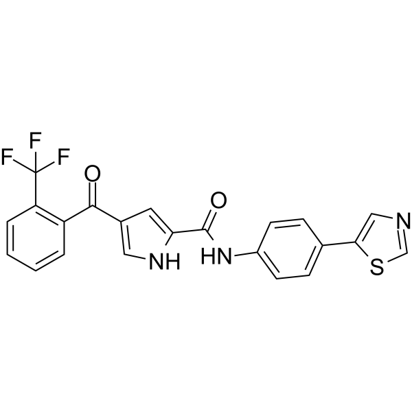 配方 1 中的溶解度: ≥ 2.5 mg/mL (5.66 mM) (饱和度未知) in 10% DMSO +40% PEG300 +5% Tween-80 +45% Saline (这些助溶剂从左到右依次添加,逐一添加), 澄清溶液。