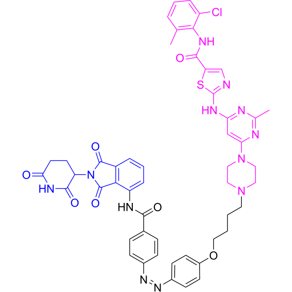 V109878 Azo-PROTAC-4C-cis Azo-PROTAC-4C-cis 是一种 BCR-ABL 蛋白降解剂,与反式异构体 Azo-PROTAC-4C-trans 相比,其对 BCR-ABL 的降解效率显著降低。