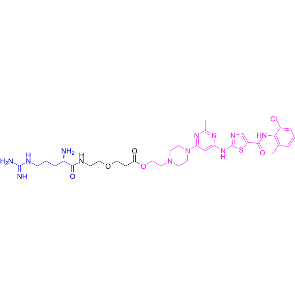 V110394 Arg-PEG1-Dasa 3037776-67-0 Arg-PEG1-Dasa 是一种靶向 BCR-ABL 的微型 PROTAC。