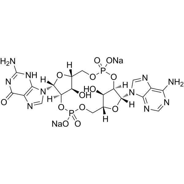 内质网膜蛋白干扰素基因刺激物 (STING) 可以被环鸟苷单磷酸-腺苷单磷酸合成酶 (cGAS) 响应双链 DNA 结合产生的 2'3'-cGAMP 激活。为了防止微生物感染,它会激活炎症细胞因子和干扰素 (IFN) 反应。 STING 是小核苷酸的重要胞质受体,对于抗病毒和抗癌免疫至关重要。 STING 信号通路触发抗肿瘤免疫反应,并作为先天性免疫和适应性免疫之间的重要纽带。在免疫原性肿瘤清除、抗病毒治疗和疫苗佐剂的众多研究中,已使用 STING 激动剂,例如内源性环二核苷酸 (CDN) 环 GMP-AMP (cGAMP)。