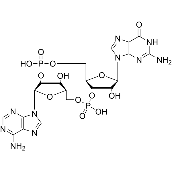 V116448 3'2'-cGAMP 1615704-64-7 3'2'-cGAMP (c[A(2',5')pG(3',5')p]) 是一种环状鸟苷酸-腺苷单磷酸 (cGAMP) 异构体。