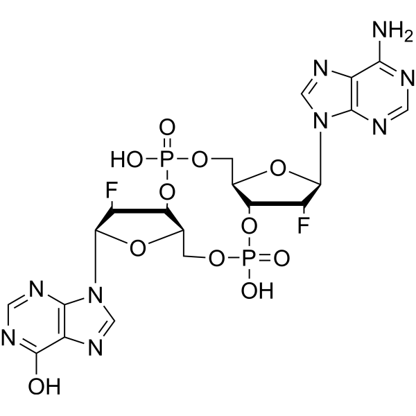 V117742 c-(2'FdAMP-2'FdIMP) 1951464-78-0 c-(2'FdAMP-2'FdIMP)(化合物 52)是 cAIMP 的衍生物,一种环状二核苷酸 (CDN)。