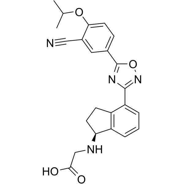 V76549 | RP101988 | 2990018-57-8 | RP101442 是 Ozanimod 的主要生物活性代谢物,也是一种选择性 S1PR1 激动剂/激活剂,对 S1PR1 和 S1P5R 的 EC50 值分别为 0.19 nM 和 32.8 nM。 |