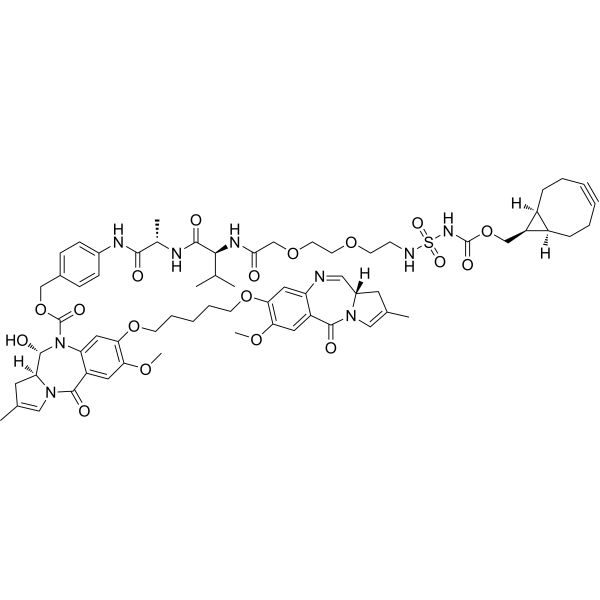V54515 | BCN-HS-PEG2-VA-PABC-SG3199 | 2126805-05-6 | BCN-HS-PEG2-VA-PABC-SG3199 (Compound 4) 是一种吡咯苯二氮卓类化合物,可用作抗体活性分子缀合物 (ADC) 的生物活性分子接头。 |