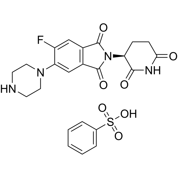 V113725 | (S)-Deoxy-thalidomide-6-F-5-piperazine benzenesulfonate | 2504914-78-5 | (S)-脱氧沙利度胺-6-F-5-哌嗪苯磺酸盐是一种E3连接酶配体-连接子缀合物,含有CRBN基配体和连接子,可用于合成PROTAC。 |