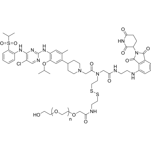 V93845 | PROTAC ALK degrader-3 | PROTAC ALK degrader-3 (4B) 是一种基于 PROTACs 的口服活性 ALK 降解剂,可有效诱导 Karpas 299 细胞中 ALK 融合蛋白的持续降解和对下游通路的强烈抑制,IC50 为 119.33 nM。 | |