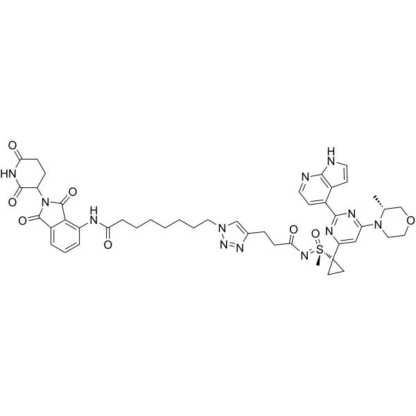 V88587 | PROTAC ATR degrader-1 | 2925916-30-7 | PROTAC ATR 降解剂-1(化合物 ZS-7)是一种强效的 PROTAC 毛细血管扩张性共济失调症和 Rad3 相关 (ATR) 降解剂,DC50 为 0.53μM。 |