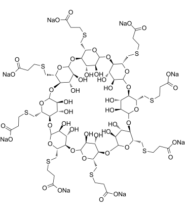 V16689 | Sugammadex sodium (Org-25969) | 343306-79-6 | Sugammadexodium (Org-25969; Org25969;bridion) 是 Sugammadex 的钠盐,是一种合成的 γ-环糊精衍生物,是一种生化药物,用于在全身麻醉中逆转肌肉松弛剂罗库溴铵造成的神经肌肉阻滞。 |
