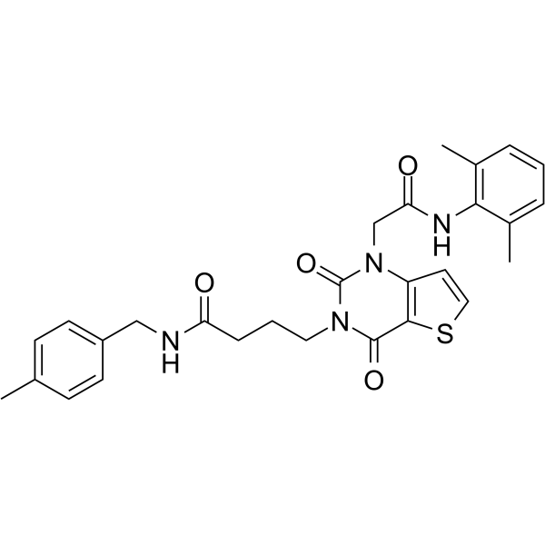 V44165 | SARS-CoV-2 nsp13-IN-2 | 522660-61-3 | SARS-CoV-2 nsp13-IN-2 (Compound C2) 是 SARS-CoV-2 非结构蛋白 13 (nsp13) 的小分子抑制剂,对 nsp13 ssDNA+ ATPase 的 IC50 为 42 μM。 |