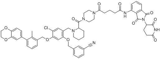 5-[4-[1-[[5-chloro-2-[(3-cyanophenyl)methoxy]-4-[[3-(2,3-dihydro-1,4-benzodioxin-6-yl)-2-methylphenyl]methoxy]phenyl]methyl]piperidine-2-carbonyl]piperazin-1-yl]-N-[2-(2,6-dioxopiperidin-3-yl)-1,3-dioxoisoindol-4-yl]-5-oxopentanamide