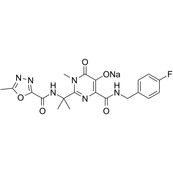 sodium;4-[(4-fluorophenyl)methylcarbamoyl]-1-methyl-2-[2-[(5-methyl-1,3,4-oxadiazole-2-carbonyl)amino]propan-2-yl]-6-oxopyrimidin-5-olate