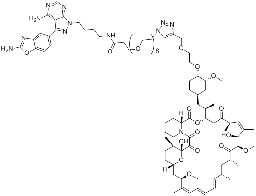 N-[4-[4-amino-3-(2-amino-1,3-benzoxazol-5-yl)pyrazolo[3,4-d]pyrimidin-1-yl]butyl]-3-[2-[2-[2-[2-[2-[2-[2-[2-[4-[2-[(1R,2R,4S)-4-[(2R)-2-[(1R,9S,12S,15R,16E,18R,19R,21R,23S,24E,30S,32S,35R)-1,18-dihydroxy-19,30-dimethoxy-15,17,21,23,29,35-hexamethyl-2,3,10,14,20-pentaoxo-11,36-dioxa-4-azatricyclo[30.3.1.04,9]hexatriaconta-16,24,26,28-tetraen-12-yl]propyl]-2-methoxycyclohexyl]oxyethoxymethyl]triazol-1-yl]ethoxy]ethoxy]ethoxy]ethoxy]ethoxy]ethoxy]ethoxy]ethoxy]propanamide
