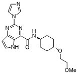 O(CCOC)C1CCC(CC1)NC(C1C2=C(C=CN2)N=C(N2C=NC=C2)N=1)=O