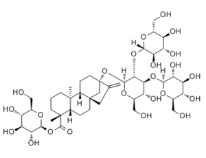 Rebaudioside A (Reb A)是一种从甜叶菊(Stevia rebaudiana)叶片中分离得到的甜菊糖苷。它是一种无营养的天然甜味剂,据报道其甜度是蔗糖的250-450倍。甜叶菊提取物(主要是甜菊苷)已在日本和韩国广泛用作甜味剂。在美国,自1994年《膳食补充剂健康与教育法》以来,包括Reb A在内的甜菊糖苷已被用作膳食补充剂。Reb A在美国被普遍认为是安全的(GRAS),可用作食品成分。[1]