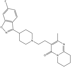 Antipsychotic Agents; Dopamine Antagonists; Serotonin Antagonists Risperdal (risperidone) is indicated for the treatment of schizophrenia. Efficacy was established in 4 short-term trials in adults, 2 short-term trials in adolescents (ages 13 to 17 years), and one long-term maintenance trial in adults /Included in US product label/ Risperdal adjunctive therapy with lithium or valproate is indicated for the treatment of acute manic or mixed episodes associated with Bipolar I Disorder. Efficacy was established in one short-term trial in adults. /Included in US product label/ Risperdal is indicated for the treatment of irritability associated with autistic disorder, including symptoms of aggression towards others, deliberate self-injuriousness, temper tantrums, and quickly changing moods. Efficacy was established in 3 short-term trials in children and adolescents (ages 5 to 17 years). /Included in US product label/ Risperdal is indicated for the treatment of acute manic or mixed episodes associated with Bipolar I Disorder. Efficacy was established in 2 short-term trials in adults and one short-term trial in children and adolescents (ages 10 to 17 years). /Included in US product label/ Drug Warnings /BOXED WARNING/ WARNING: INCREASED MORTALITY IN ELDERLY PATIENTS WITH DEMENTIA-RELATED PSYCHOSIS. Elderly patients with dementia-related psychosis treated with antipsychotic drugs are at an increased risk of death. Risperdal (risperidone) is not approved for the treatment of patients with dementia-related psychosis. Like other antipsychotic agents (e.g., phenothiazines), risperidone has been associated with tardive dyskinesias. Although it has been suggested that atypical antipsychotics appear to have a lower risk of tardive dyskinesia, whether antipsychotic drugs differ in their potential to cause tardive dyskinesia is as yet unknown. In one open-label study, an annual incidence of tardive dyskinesia of 0.3% was reported in patients with schizophrenia who received approximately 8-9 mg of oral risperidone daily for at least 1 year. The prevalence of this syndrome appears to be highest among geriatric patients (particularly females). The risk of developing tardive dyskinesia and the likelihood that it will become irreversible also appear to increase with the duration of therapy and cumulative dose of antipsychotic agents administered; however, the syndrome may occur, although much less frequently, after relatively short periods of treatment with low dosages. Neuroleptic malignant syndrome (NMS), a potentially fatal symptom complex, has been reported in patients receiving antipsychotic agents. NMS requires immediate discontinuance of the drug and intensive symptomatic and supportive care. Dose-related somnolence was a commonly reported adverse effect associated with risperidone treatment. Approximately 8% of adult patients with schizophrenia receiving 16 mg of oral risperidone daily and 1% of patients receiving placebo reported somnolence in studies utilizing direct questioning or a checklist to detect adverse events, respectively. For more Drug Warnings (Complete) data for RISPERIDONE (41 total), please visit the HSDB record page. Pharmacodynamics The primary action of risperidone is to decrease dopaminergic and serotonergic pathway activity in the brain, therefore decreasing symptoms of schizophrenia and mood disorders. Risperidone has a high binding affinity for serotonergic 5-HT2A receptors when compared to dopaminergic D2 receptors in the brain. Risperidone binds to D2 receptors with a lower affinity than first-generation antipsychotic drugs, which bind with very high affinity. A reduction in extrapyramidal symptoms with risperidone, when compared to its predecessors, is likely a result of its moderate affinity for dopaminergic D2 receptors. Antipsychotics have been regarded to effect mainly neurons or neural networks including the synapse network for a long period of time. However, the present study has demonstrated that antipsychotics, especially risperidone, have an anti-inflammatory effect via the inhibition of microglial activation. Antipsychotics may therefore have a potentially useful therapeutic effect on schizophrenic patients by reducing microglial inflammatory reactions, which may inhibit the process of neurogenesis and oligodendrogenesis. These results might shed some new light on the therapeutic strategies for the treatment of schizophrenia. Agents that can inhibit microglial activation may also be useful for the treatment of schizophrenia. For further studies, the molecular mechanism of the inhibitory effect of Risperidone on microglial activation should be clarified in detail while in vivo studies to confirm the present results should also be performed.[3] The mechanistic basis of P-gp transport and inhibition has been intensively studied for many years. Several hypotheses have been developed in an effort to explain the molecular mechanism of interaction of P-gp and its substrates or inhibitors. However, owing to multiple drug binding sites on P-gp, the development of a universally accepted model for reconciling the data from various laboratories remains a challenge. It has been demonstrated that there is a minimum of four drug binding sites on P-gp. These sites can be divided into two categories: transport sites, at which translocation of drug across the cellular membrane can occur, and regulatory sites, which modify P-gp function (Martin et al, 2000). In addition, some agents can inhibit P-gp activity by decreasing intracellular ATP supply and inhibiting P-gp ATPase activity (Batrakova et al, 2001). Considering the fact that both Risperidone/RSP and PALI appear to be P-gp substrates as well as inhibitors, competition with other substrates for binding to P-gp is a possible mechanism of their P-gp inhibition. However, other mechanisms cannot be excluded and further studies are needed to elucidate the molecular basis of RSP and PALI interactions with P-gp.[4] A final answer regard