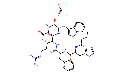 InChI=1S/C39H52N12O6.C2HF3O2/c1-3-10-34(53)47-31(19-26-21-43-23-46-26)37(56)49-30(17-24-11-5-4-6-12-24)36(55)48-29(15-9-16-44-39(41)42)35(54)50-32(38(57)51(2)22-33(40)52)18-25-20-45-28-14-8-7-13-27(25)28;3-2(4,5)1(6)7/h4-8,11-14,20-21,23,29-32,45H,3,9-10,15-19,22H2,1-2H3,(H2,40,52)(H,43,46)(H,47,53)(H,48,55)(H,49,56)(H,50,54)(H4,41,42,44);(H,6,7)/t29-,30-,31-,32-;/m0./s1